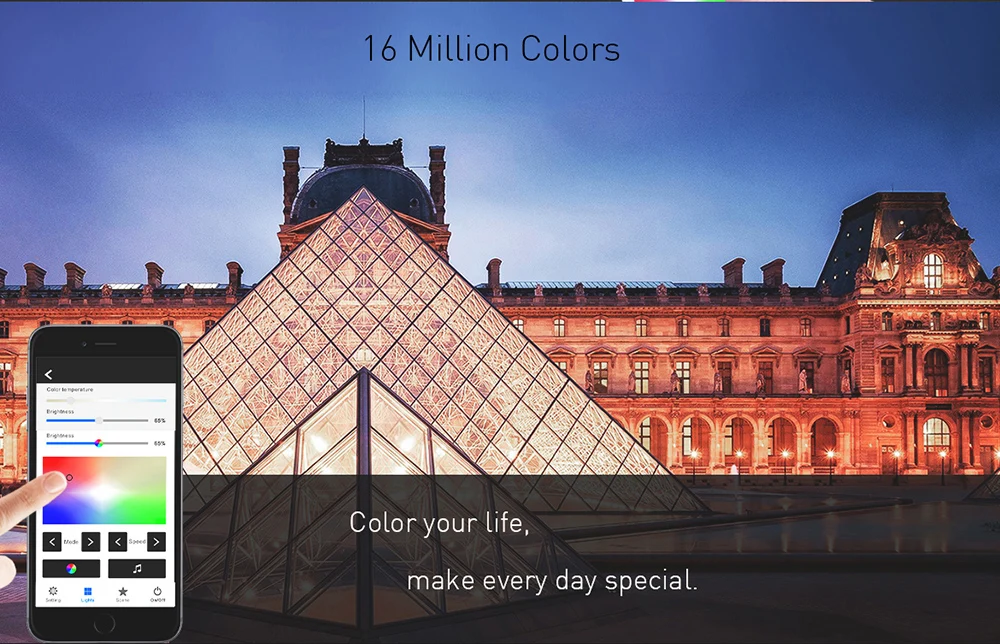 ● Может реализовывать эффекты затемнения, цветовой температуры, RGB, RGBW, RGB + CCT светильник.