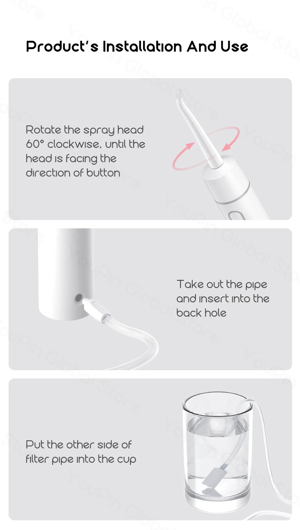 ------ 1400 раз импульсный каждую минуту, 60 - 110psi давления воды, которые могут удовлетворить ваши потребности. * Мягкий режим, которые могут производить более 60psi давление воды. * Режим PRO, которые могут производить более 110psi напора воды. ------