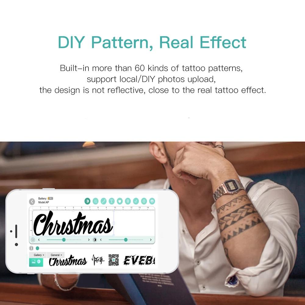 Приложение поддерживает ручной рисунок, а также может печатать слова и предложения на коже, одежде, чашках для воды, подарочной упаковке и других предметах. Яркость и контрастность рисунка/текста можно регулировать.