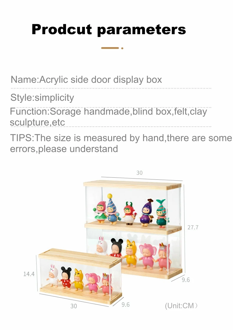Акриловая боковая дверная витрина, не только удобная для вашей коллекции и защиты, но также может сделать ваш рабочий стол более чистым и аккуратным, а простой стиль позволяет ему отображаться в различных сценах. Кроме того, его легко установить без клея, оснащенного овальной ручкой, открыть и закрыть без скольжения. И акриловая доска с покрытием, Заводская защита, чтобы не оставлять следов, ламинат не только гладкий без колючек, но и с естественным вкусом. Самое главное-цена.