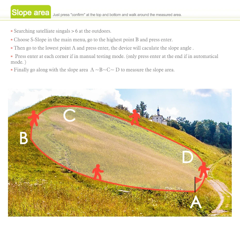 2.Any shap of earth square and girth can be measured ( upland and slope inculded ) .