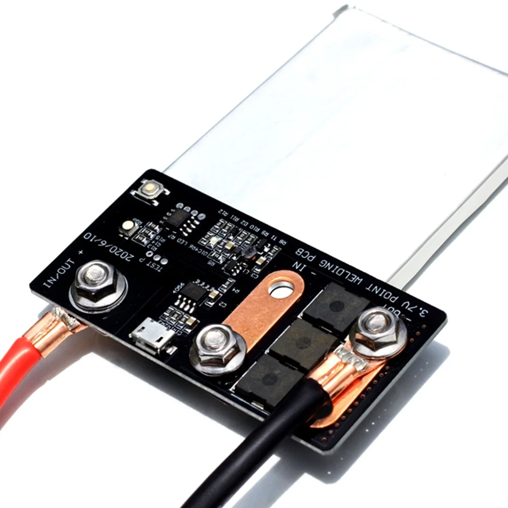 Эта панель управления точечной сварочной машины встроена в литий-ионный аккумулятор высокой мощности 3,7 В, возможность разрядки 4,5a, 90C, может обеспечить длительное время работы. Оснащенный 2 индикаторным светильник s, один-зарядка и рабочий индикатор состояния светильник, другой-система самопроверки индикатор светильник. Поддержка сварки 0,1 мм-0,15 мм никелевая пластина, сварные соединения прочные и надежные. Вы можете попробовать.