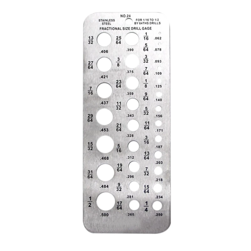 Эквиваленты от 1/16 дюйма до 1/2 дюйма на 1/64 дюйма.