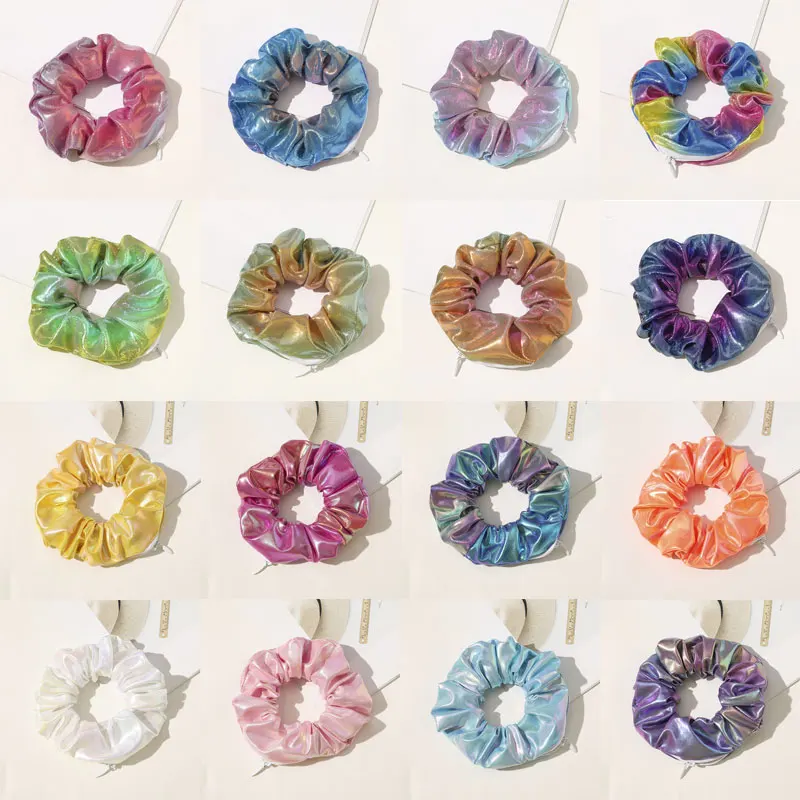 Женские резинки на молнии, аксессуары для волос, карманные резинки на молнии, женские резинки, градиентный цвет, искусственная кожа, резинки для волос, лазерная ткань