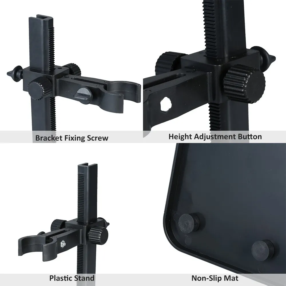 Особенности: Эта рабочая станция микроскопа может быть отрегулирована вверх и вниз, чтобы удовлетворить ваши требования. Легко устанавливается и снимается. Светильник, удобно носить с собой. Портативный держатель для цифровой USB микроскоп, Макс 1,2 "в диаметре. Регулируемая высота от 0 до 6 ”. Он может помочь микроскопу вращаться под любым углом. Этот Стенд отображает шкалу измерения, чтобы определить точный размер объектов, которые вы просматриваете для точной оценки или оценки повреждения. Технические характеристики: Материал: Пластик Цвет: черный Кольцо Диаметр: 3,1 см/1.2in Максимальная высота: 15,3 см/6 дюймов Применение: Цифровой Микроскоп USB Размер изделия: 16*12*15,3 см/6,3*4,7*6 дюймов Вес изделия: 111 г Посылка Размеры: 18*13*4,3 см/7*5,1 * 1.7in Посылка Вес: 191 г Примечание: Цвет реального товара может показать прицел отличаться из-за разных условий съемки светильник и настроек экрана монитора. Упаковочный лист: 1 * настольная подставка для цифрового микроскопа