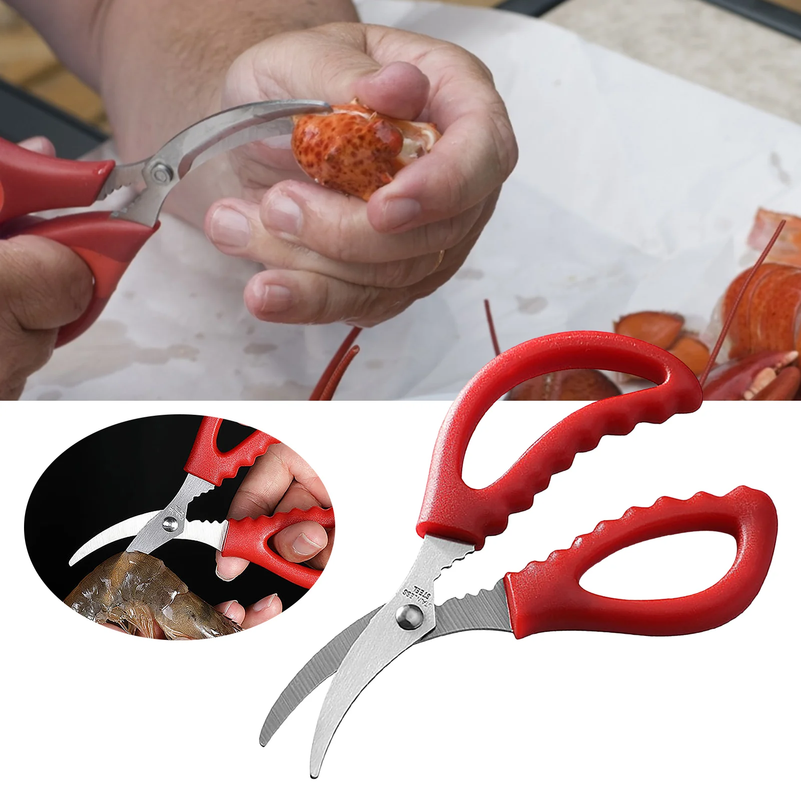 1. Ножницы для омаров легко режут открытые раковины для омаров и крабов, не повреждая нежное мясо внутри или оставляя излишки фрагментов оболочки позади.