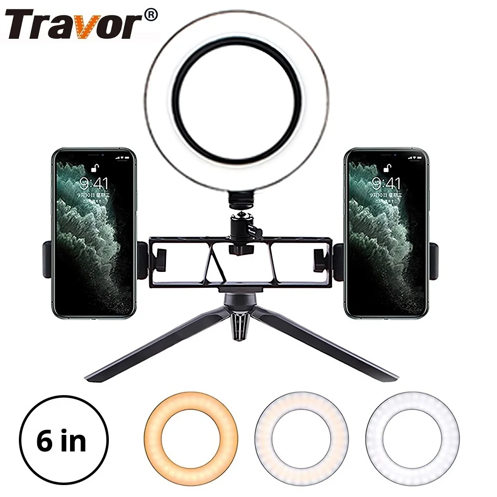 Светодиодная кольцевая лампа Travor, 6 дюймов, с держателем для телефона, мини-штатив с регулируемой яркостью, для селфи, для съемки видео на Youtube