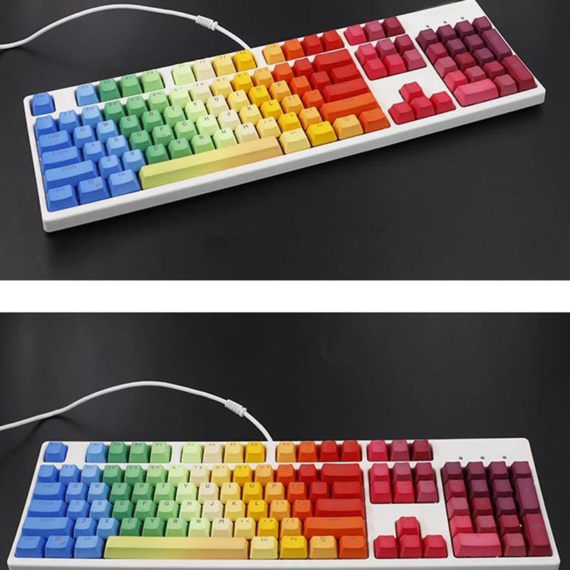 104 ключа Радуга Keycap PBT Dip с градиент цвета радуги, подходит для клавиатуры с поперечным валом
