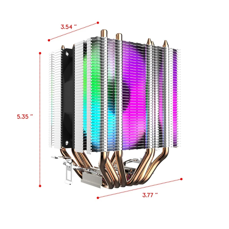 Cpu воздушный охладитель 6 тепловых труб двухбашенный радиатор с 90 мм радужными светодиодными вентиляторами для 775/1150/1155/1156/1366