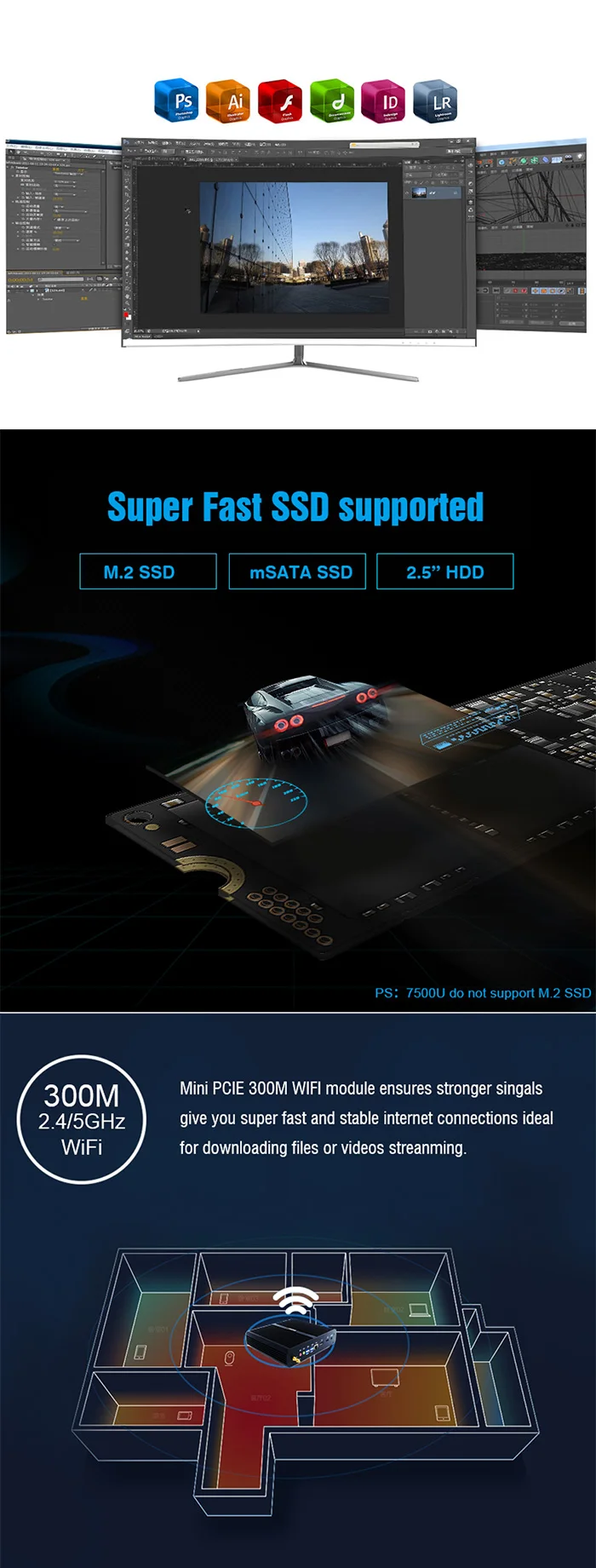 Поддержка mSATA SSD и 2,5 дюймового ноутбука HDD/SSD; Можно установить максимум 1 HDD (2,5 дюйма) + 1 SSD (mSATA 3,0) вместе