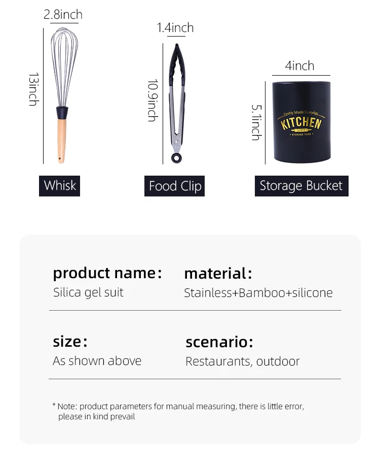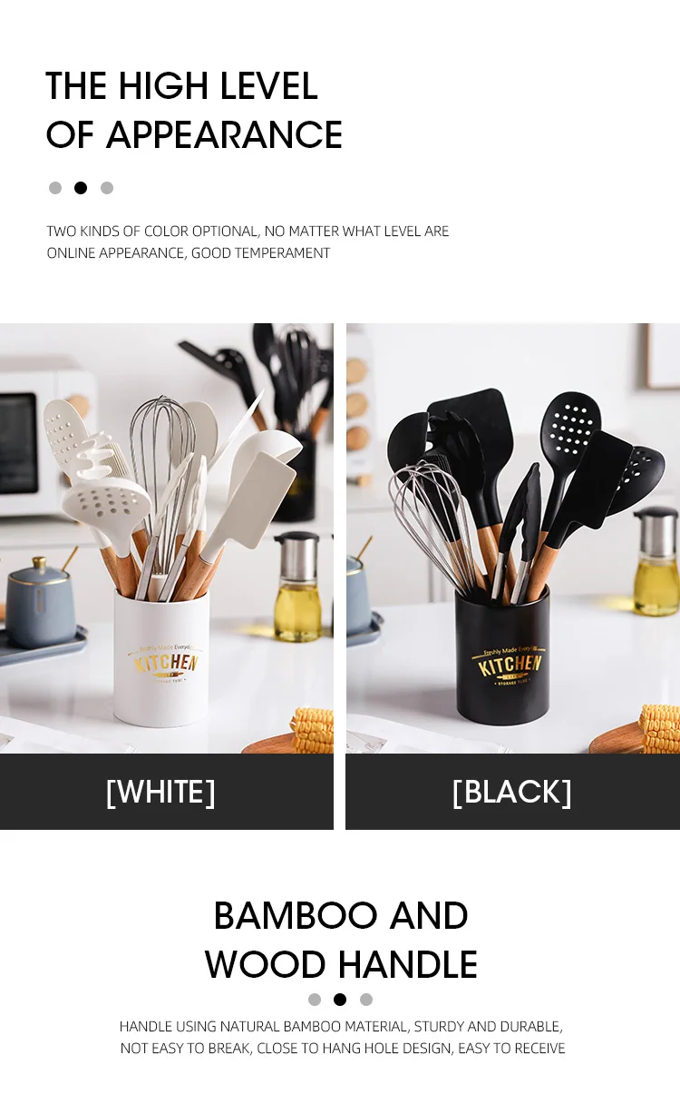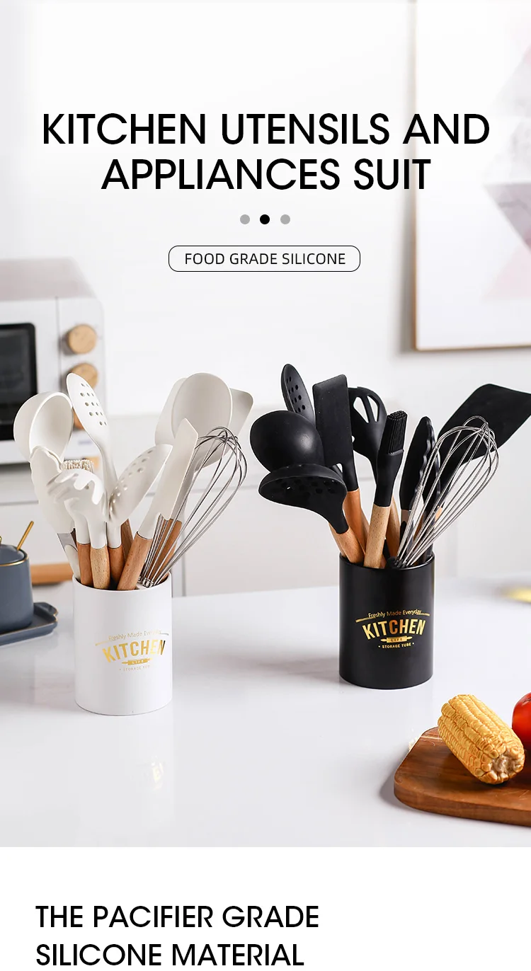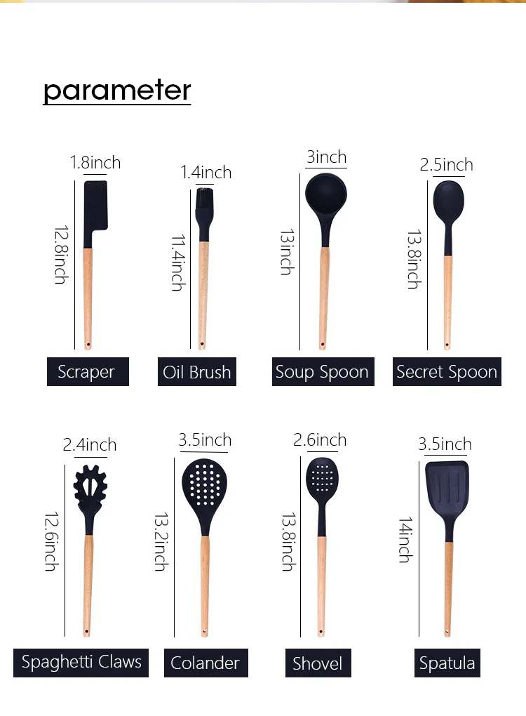 12Силиконовые кухонные принадлежности, антипригарная лопата с деревянной ручкой, инструменты для приготовления пищи с ящиком для хранения, аксессуары для кухонных инструментовОписание:
