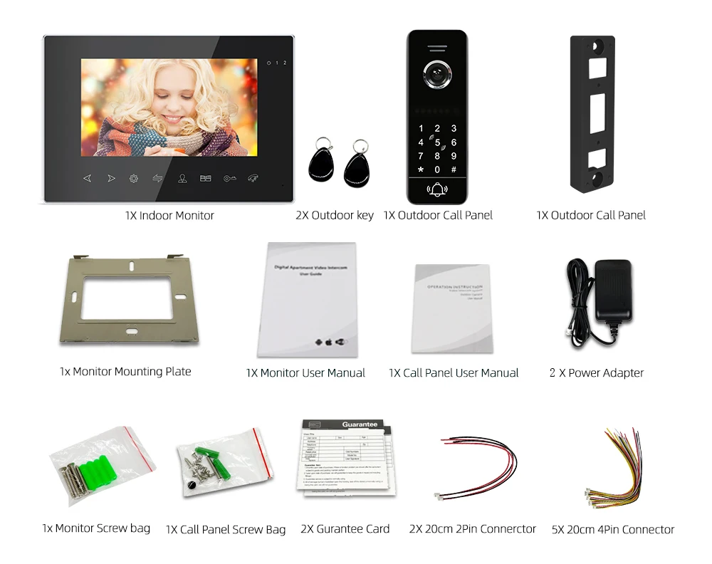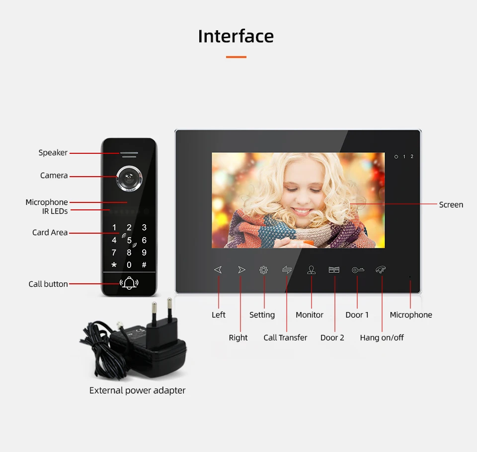 ♦Максимальная поддержка подключения с 2 наружными панелями вызова + аналоговые 2 камеры + 6 мониторов в одной системе.
