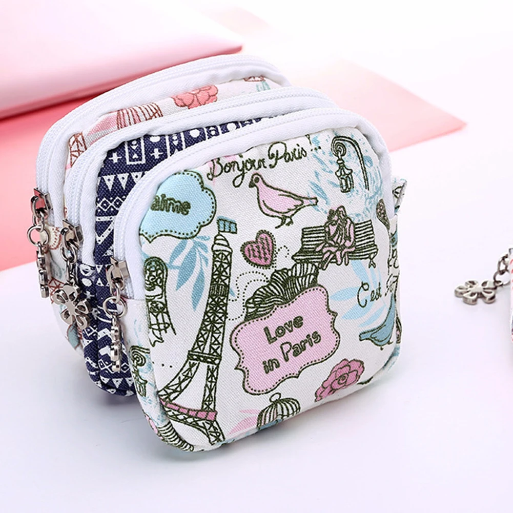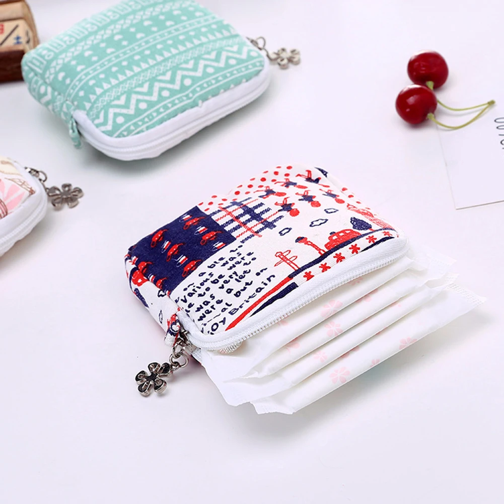 Милый Печатный двойной слой на молнии для женщин гигиенические салфетки коврик держатель Мини сумка для хранения