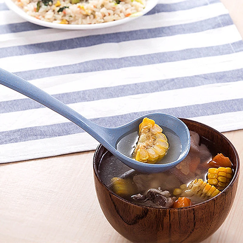 Большая длинная ложка, посуда, Пшеничная солома, ложка для риса, 4 цвета, ручка, ложка для супа, десертные ложки, кухонные принадлежности, инструмент для приготовления пищи