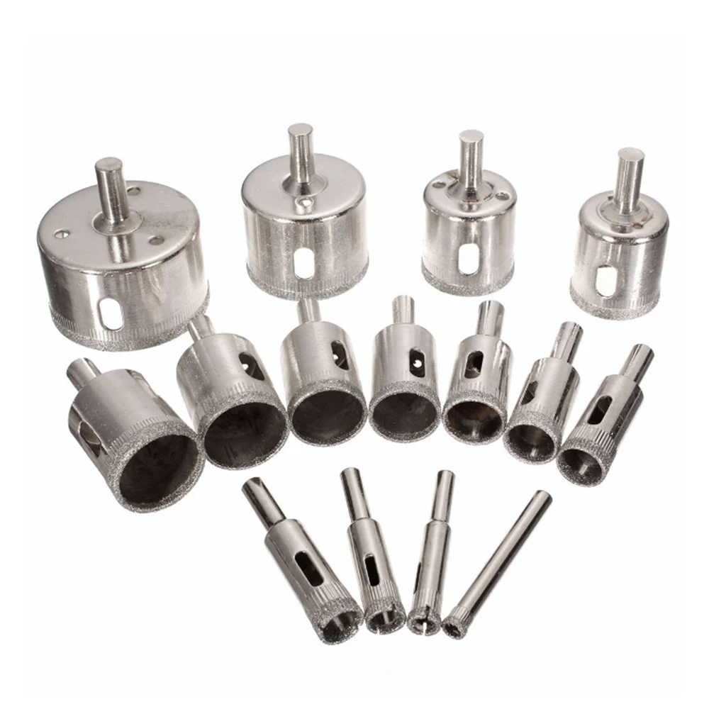 15 шт. кольцевых пил, различных размеров, используются для сверления отверстий для стекла, керамики, мрамора, плитки и гранита.