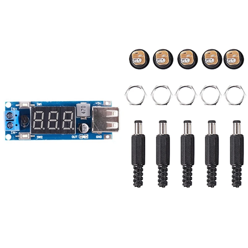 DC-DC 4,5-40 В до 5 В 2A USB понижающий модуль преобразователя Напряжения С 5 шт. DC гнездовой разъем + 5 шт. Разъем Черный