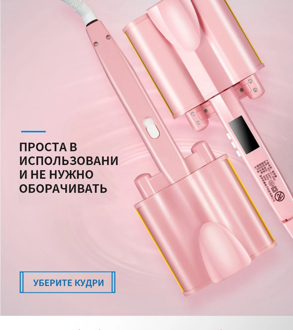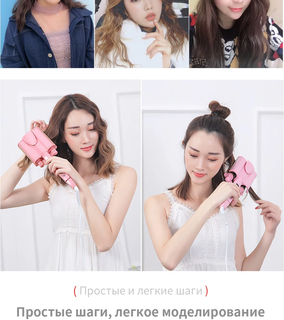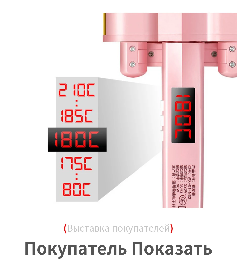 Применимые волосы: влажные и сухие Материал теплового проводника: турмалиновая керамика Диаметр теплового проводника: 21 мм-30 мм Регулировка температуры: 10 сегментов