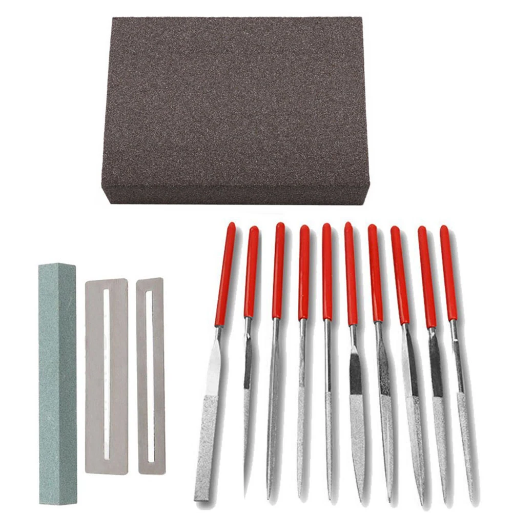 14 шт. гитарные лады Гайка Седло Полировка Файлы Шлифовальные камень губка инструменты комплект