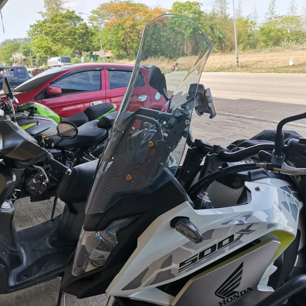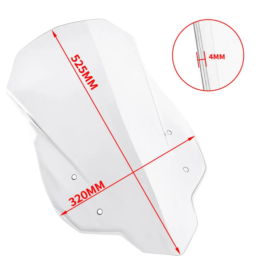 Туристическое ветровое стекло было ветровым туннелем, испытанным для повышения защиты от ветра и комфорта на скоростях шоссе. Он изготовлен из 4 мм толстого ударопрочного акрила, чтобы противостоять вибрации, царапинам и растрескиванию.