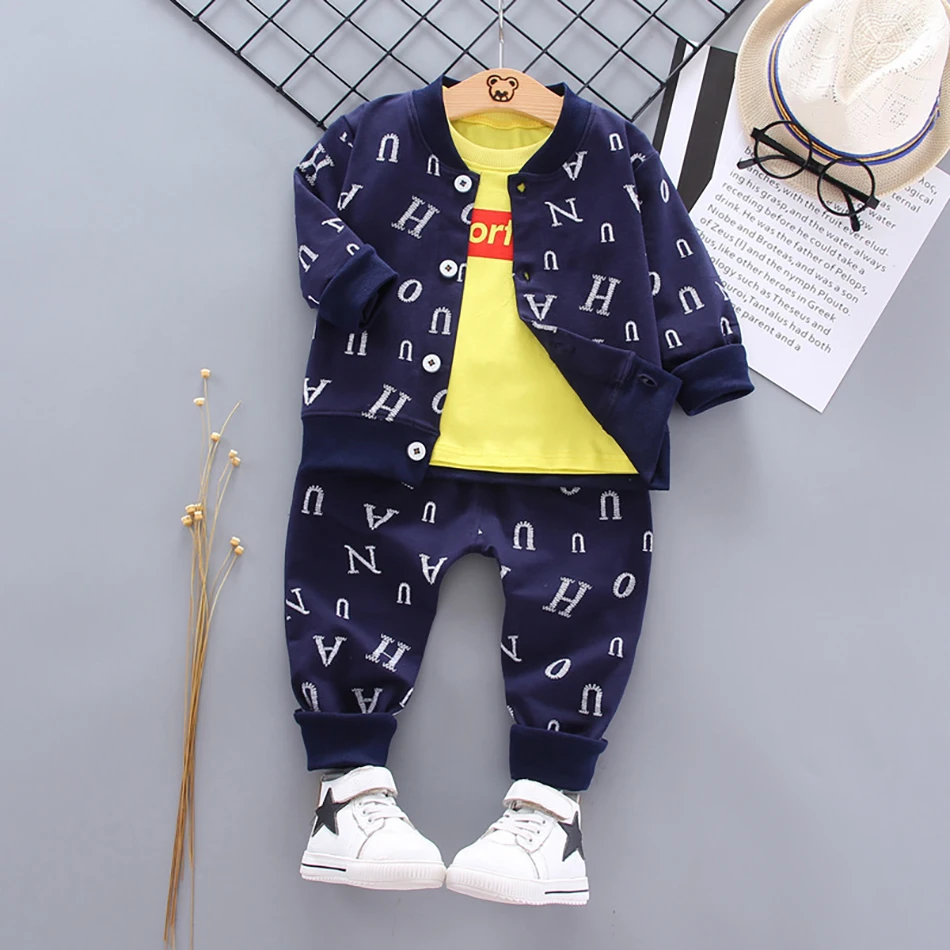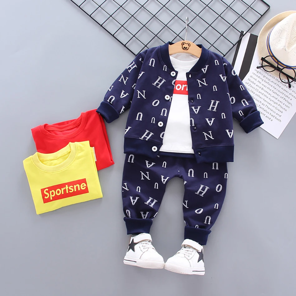 Спортивные костюмы для детей ясельного возраста, одежда для мальчиков и девочек, детская куртка футболка Топы + штаны, комплект из трех предметов, весенне-осенняя одежда с рисунком
