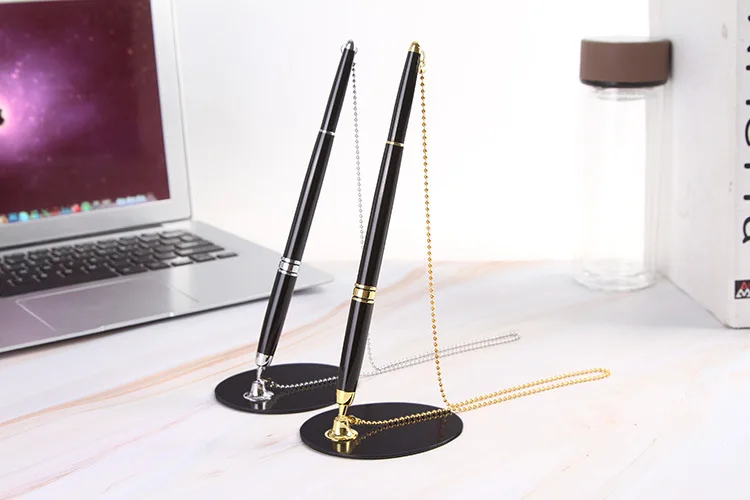 Materials:Metal Product Length: app.210mm/8.26in Pen chain length: 500mm Writing point:0.5 mm Writing color:Black Product color: Black 100% Brand New and High Quality, Metal business signature office ballpoint pen GREAT GIFT: Our Metal stylish/classic design high-quality, budget-friendly ball pen is an ideal gift for lawyers, real estate, professional business office or event, college activities. Custom LOGO: Please contact us first if you want custom a logo pen!