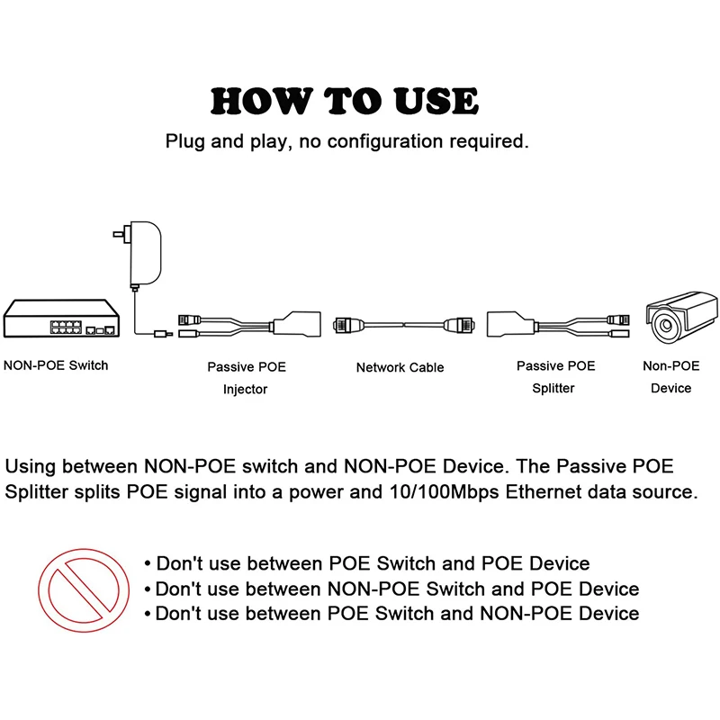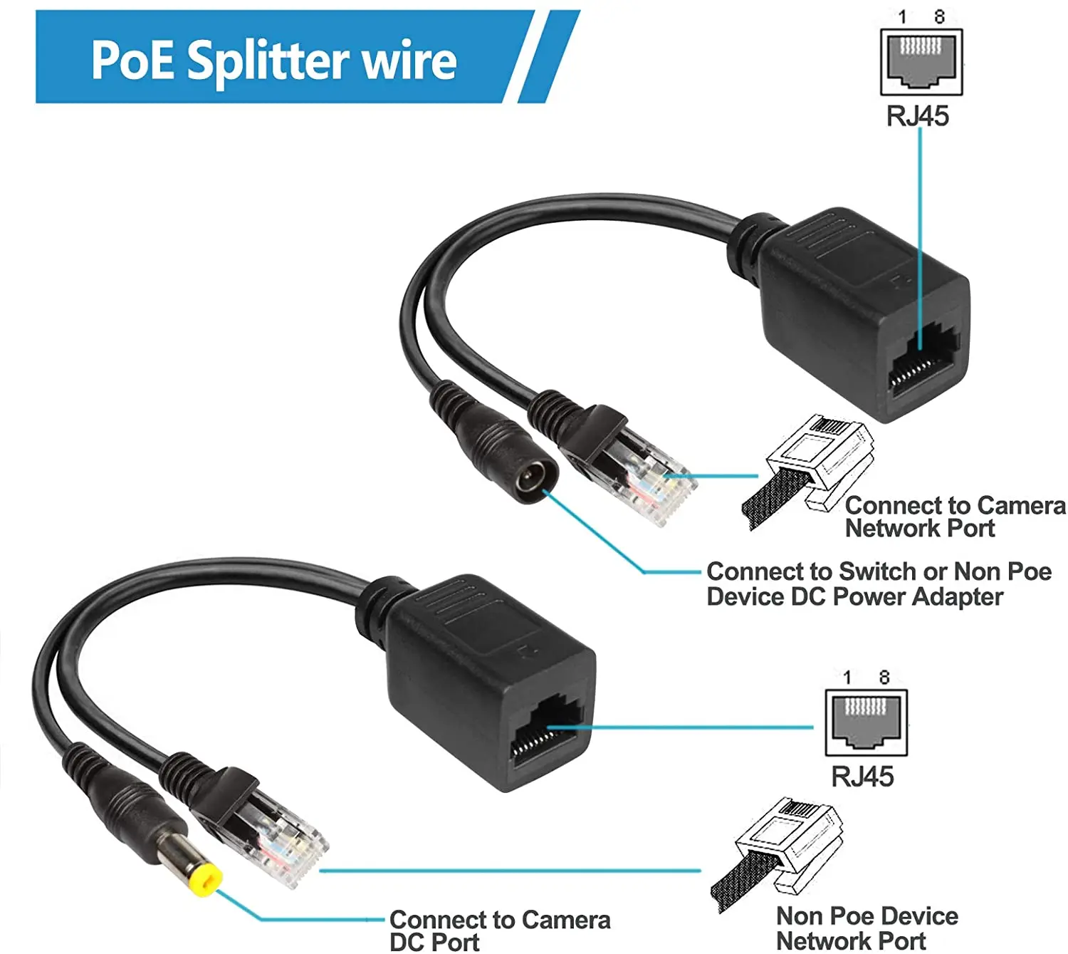 Особенности: Пассивный PoE-означает, что входное и выходное напряжение равны. Преобразует устройства без PoE для включения PoE. Источник питания, требуемый для ввода питания-просто используйте источник питания (настенный трансформатор), который снабжен устройством, которое вы пытаетесь получить. PoE Инжектор И Сплиттер Комплект с 5,5*2,1 мм DC jack / plug. Используйте с ip-камерой безопасности, беспроводной точкой доступа и другими устройствами. Может работать to30-40 метров/100-130 футов (в зависимости от качества кабеля и мощности устройства). Посылка: 1 * PoE кабель инжектора