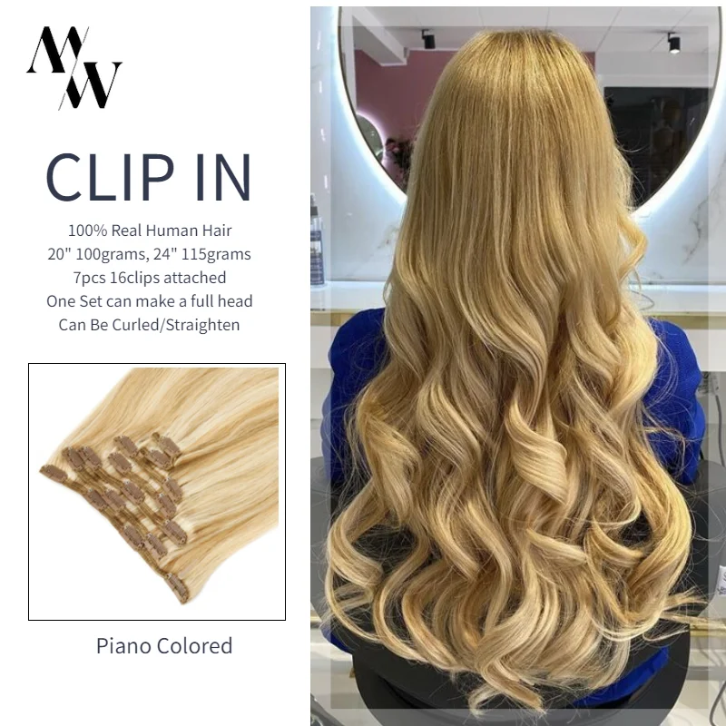 MW фортепиано цвет клип в человеческие волосы 100% натуральные волосы для наращивания 20 "24" 7 шт набор полная голова шелковистая прямая машина сделано Remy Клип Ins