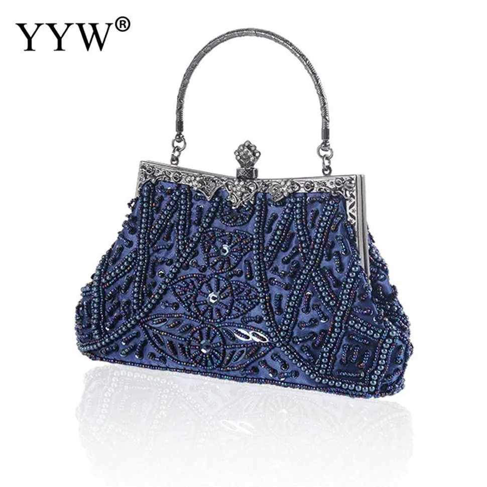 Винтажная сумочка, женские роскошные вечерние сумки, темно-синие вечерние сумочки и сумки, дизайнерские женские клатчи, сумки через плечо, Sac A Main