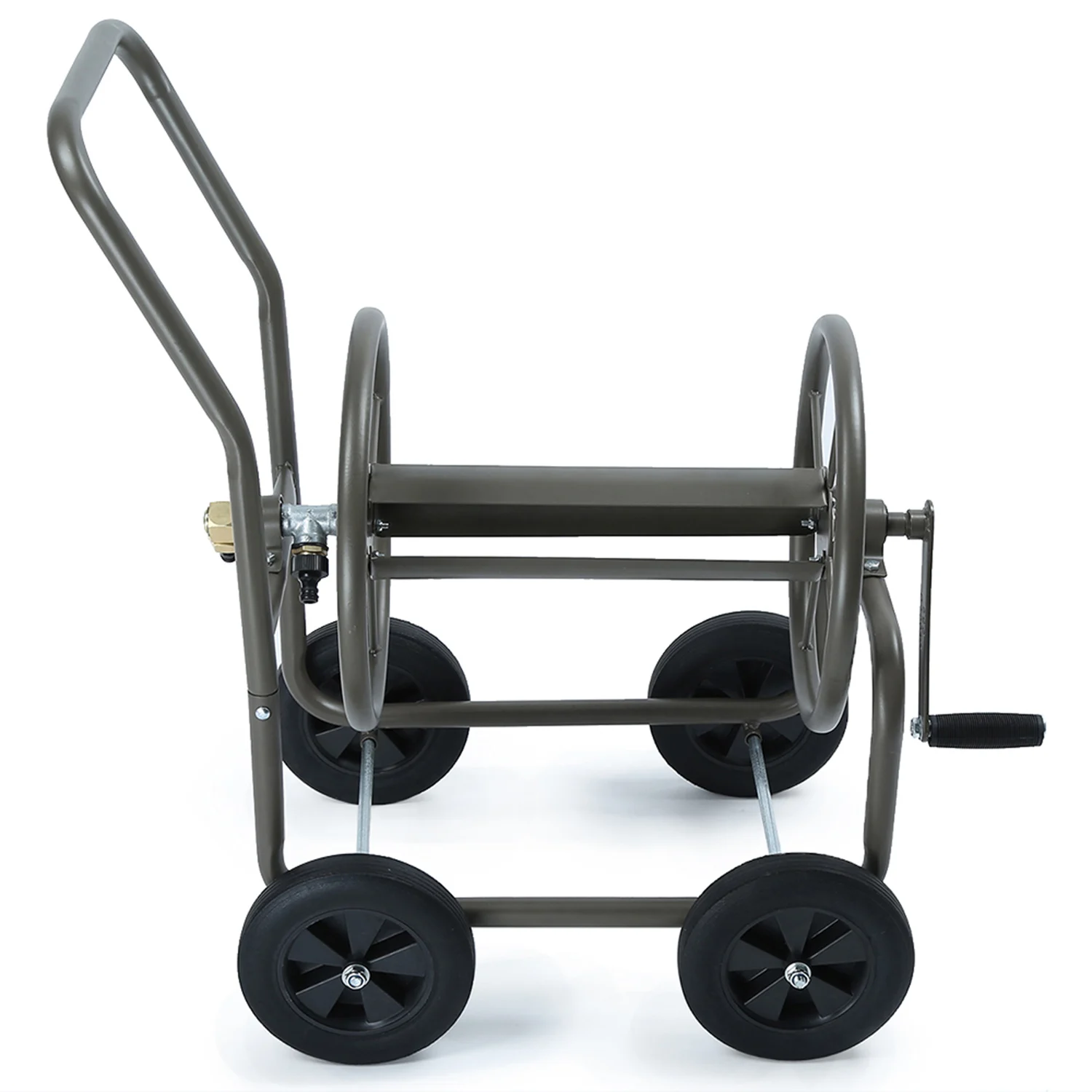 Большая емкость, 150 футов шланга можно свернуть на тележке.