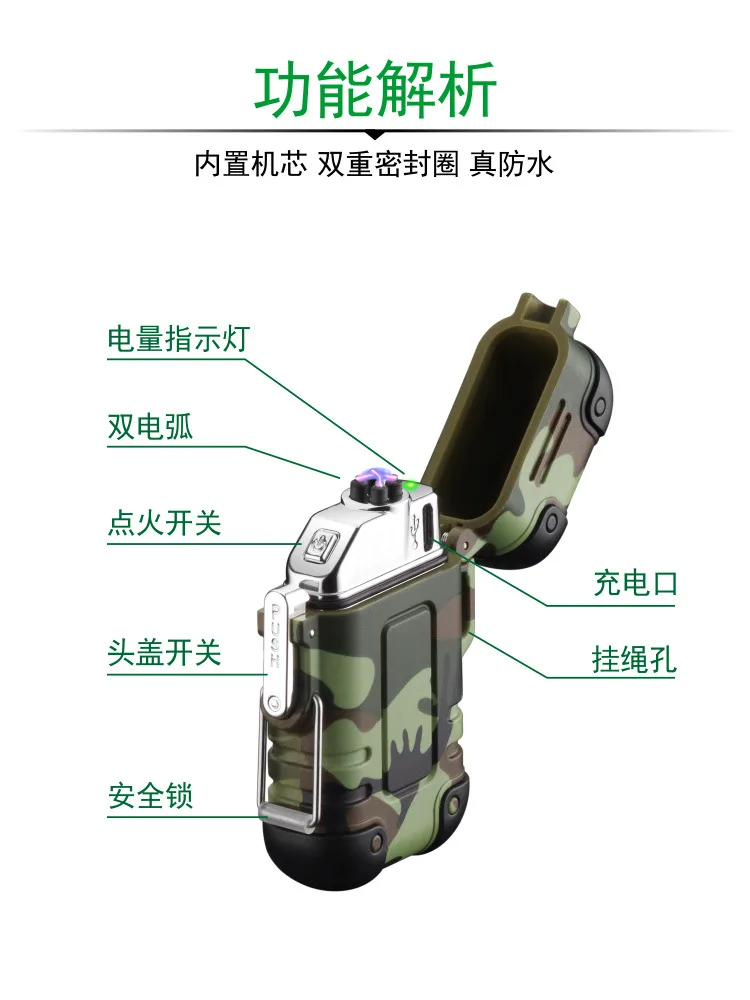 <Непродуваемая и беспламенная: дуговая зажигалка оснащена ветрозащитной и Беспламенной крышкой, которая подходит для активного отдыха.