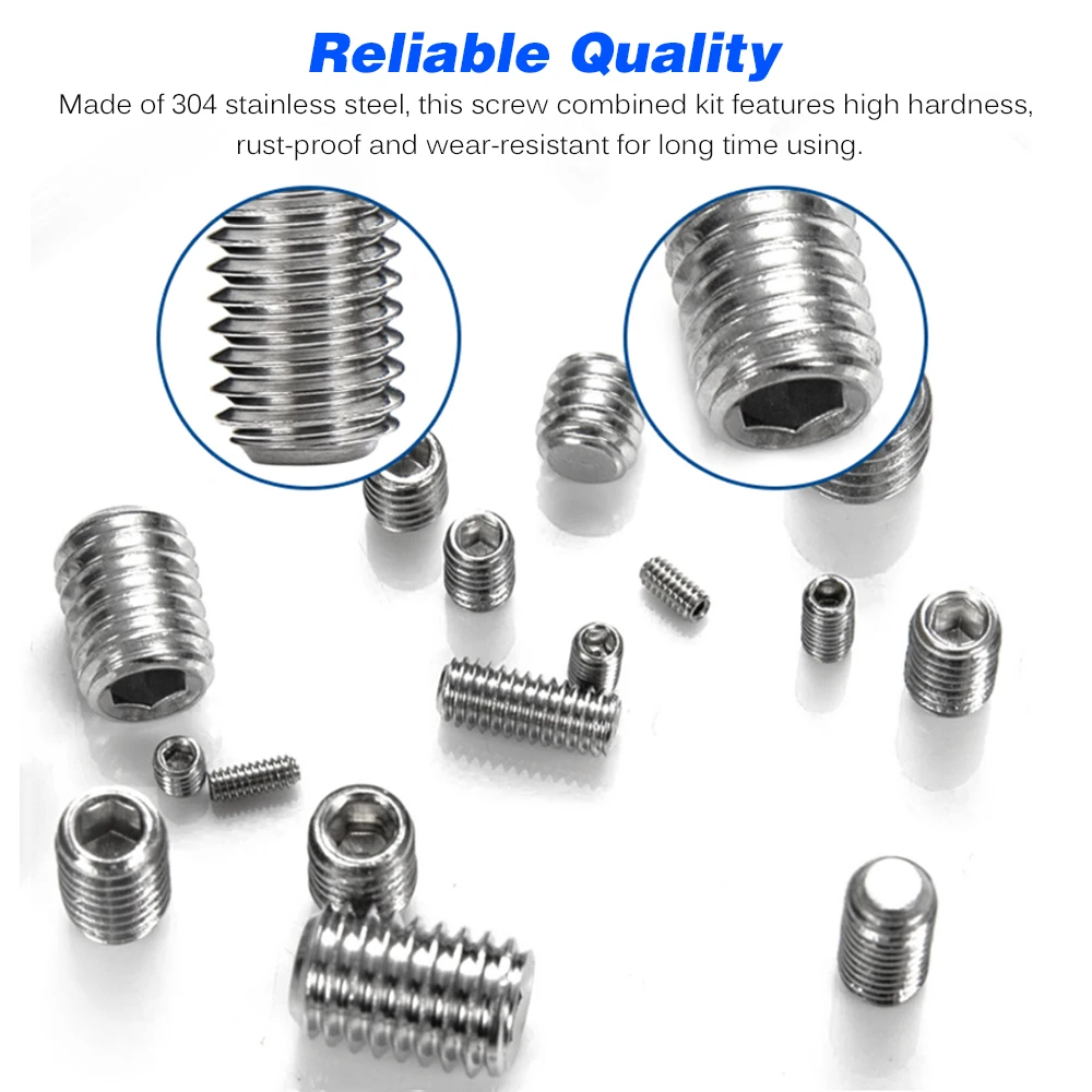 -Надежное качество: изготовлен из нержавеющей стали 304, этот комбинированный набор винтов отличается высокой твердостью, ржавчиной и износостойкостью в течение длительного времени.