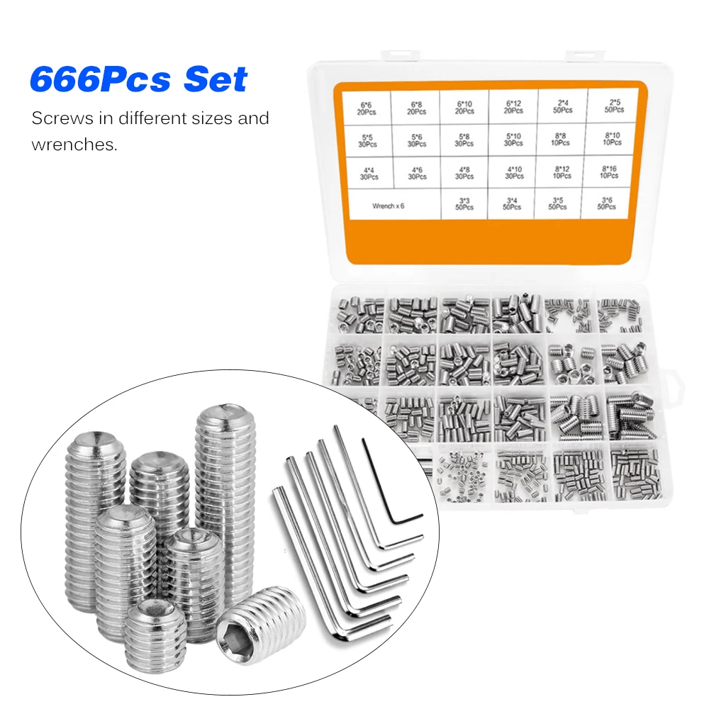 Включая 666 штук в 6 размерах для удовлетворения ваших различных потребностей, этот высококачественный набор винтов из нержавеющей стали является водонепроницаемым и достаточно прочным для длительного срока службы. Он подходит для всех видов сборки, обслуживания и ремонта точного оборудования, электронных продуктов и бытовой техники, идеально подходит для всех видов работников и ремонтников.