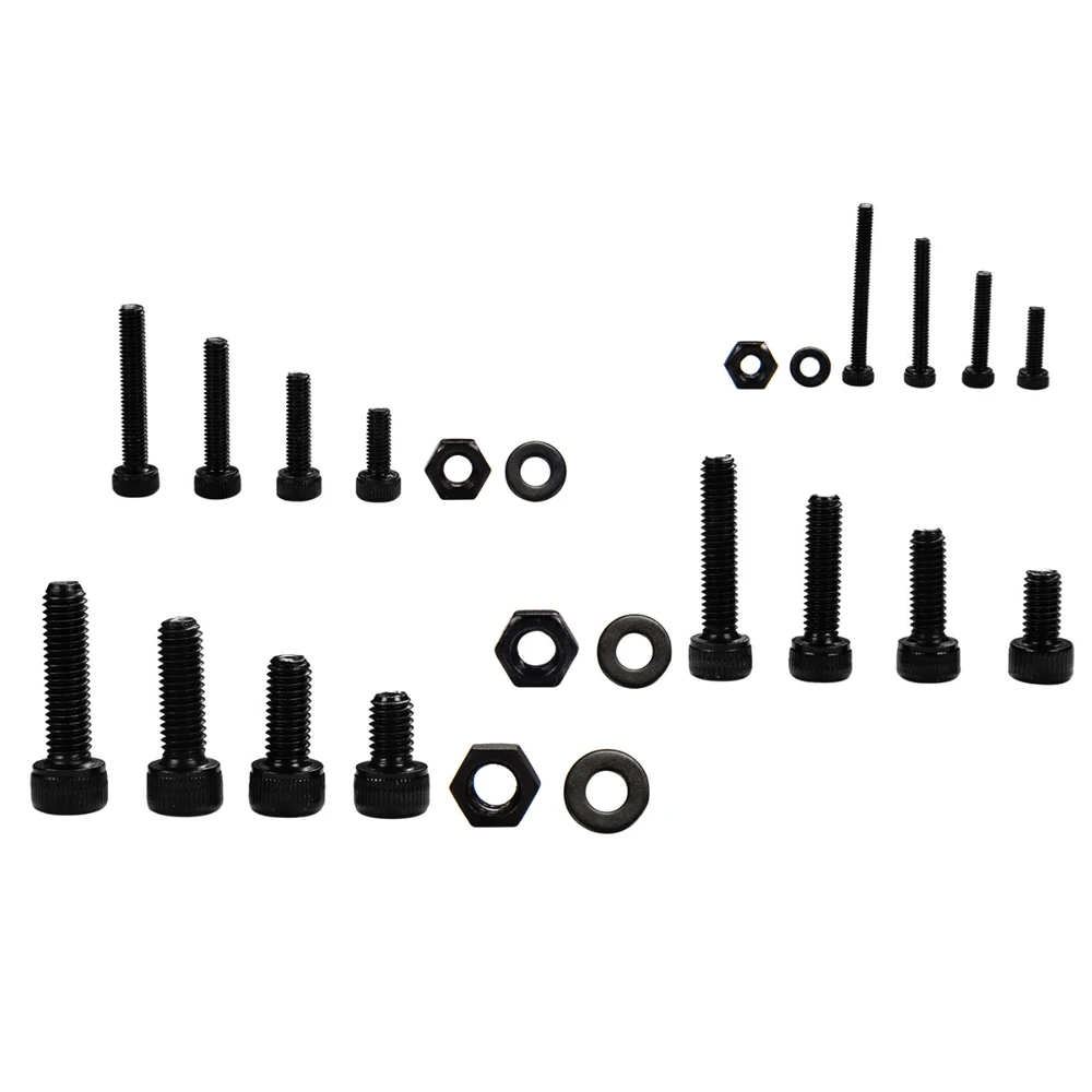 -Набор из 1060 штук: Винтовые гайки, шайбы и шестигранные винты с головкой цилиндра разных размеров.