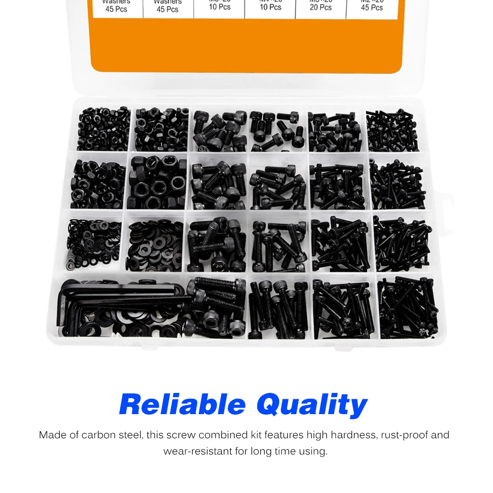 -Надежное качество: Изготовлен из углеродистой стали, этот комбинированный набор винтов отличается высокой твердостью, ржавчиной и износостойкостью в течение длительного времени.