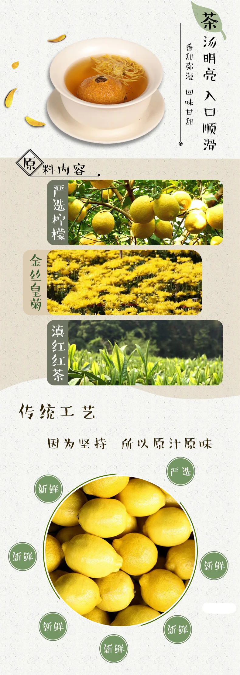 Лимонный чай с хризантемами имеет функции красоты и отбеливания, очищения тепла и удаления огня, успокаивающего мокроты, снятия кашля, укрепления желудка, укрепления селезенки и стерилизации. Хризантема может облегчить боль, усталость глаз, отек глаз и боль, слезы, онемение кожи, ревматизм и боль.