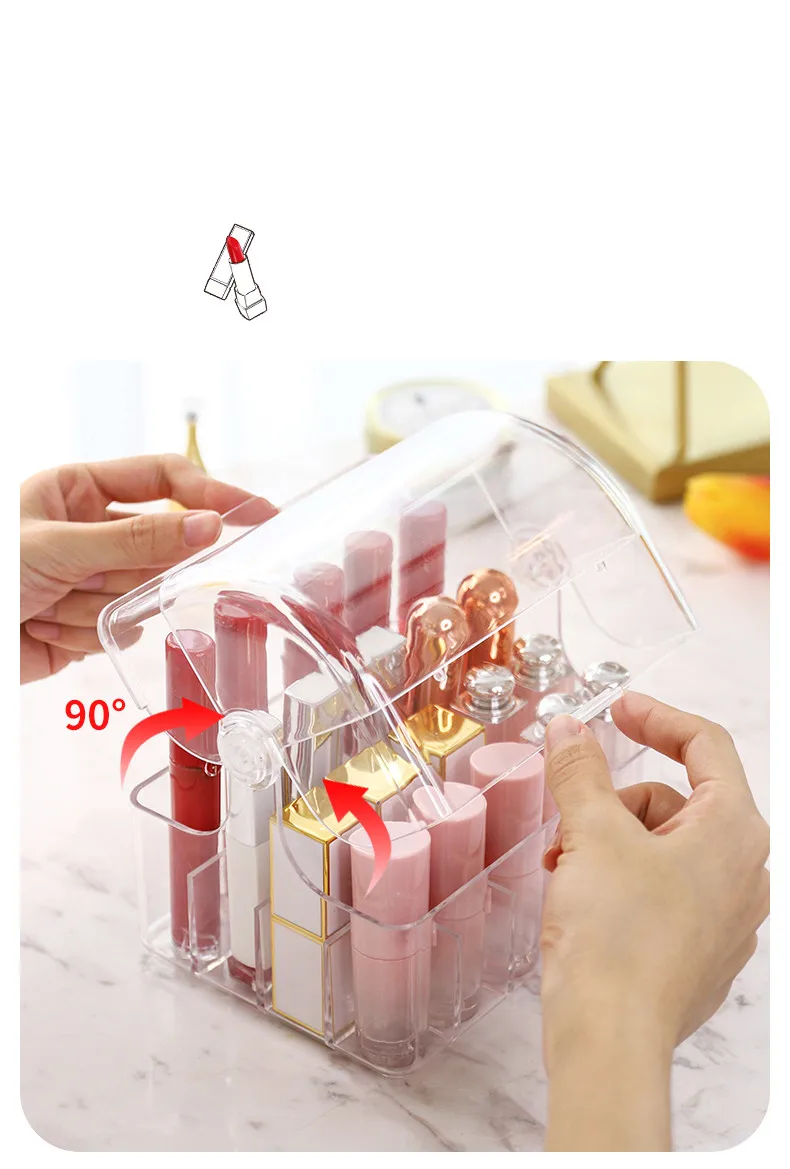 INS стильная акриловая коробка для хранения губной помады, водонепроницаемый органайзер для макияжа губной помады, держатель для косметики, большая емкость, коробка для хранения с крышкой
