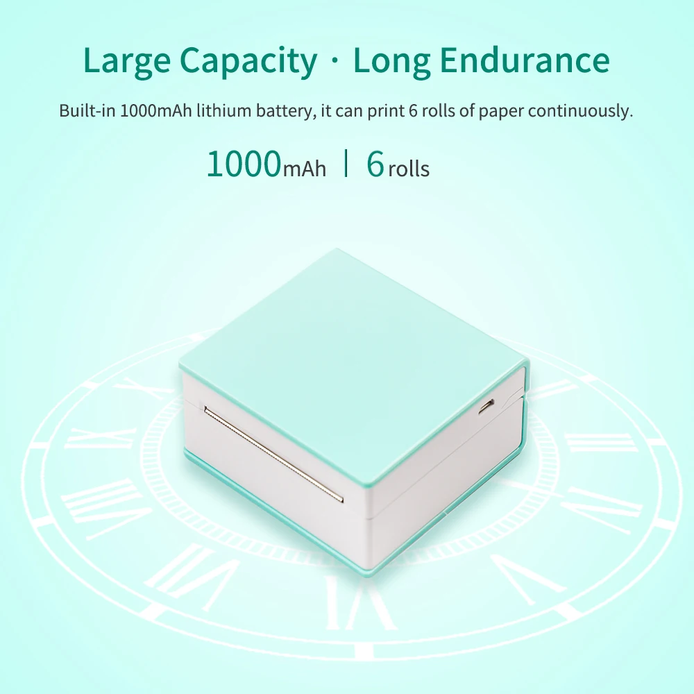 Длительная выносливость:Встроенный литиевый аккумулятор 1000 мА · ч, зарядка через USB, после полной зарядки может напечатать 6 рулонов бумаги, никаких проводов, печать в любое время и в любом месте.