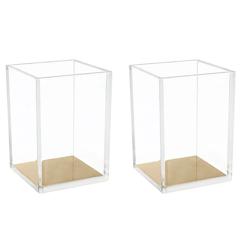 2 упаковки, акриловый карандаш и держатель для ручек, золотой Настольный канцелярский органайзер, аксессуар для офисного стола, Кисть для макияжа, ведро для хранения кистей