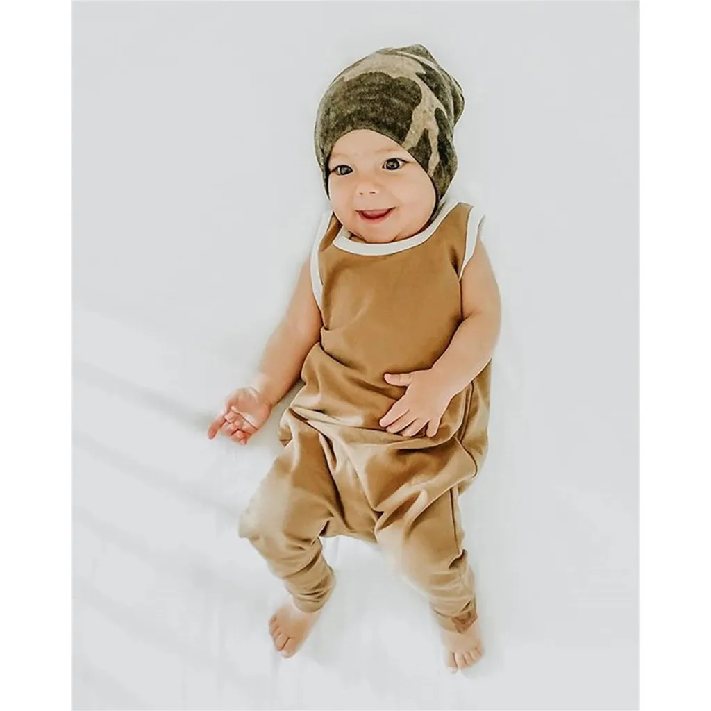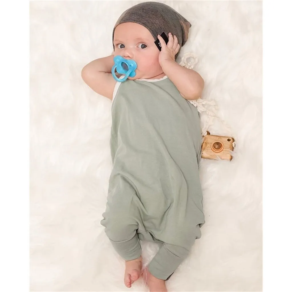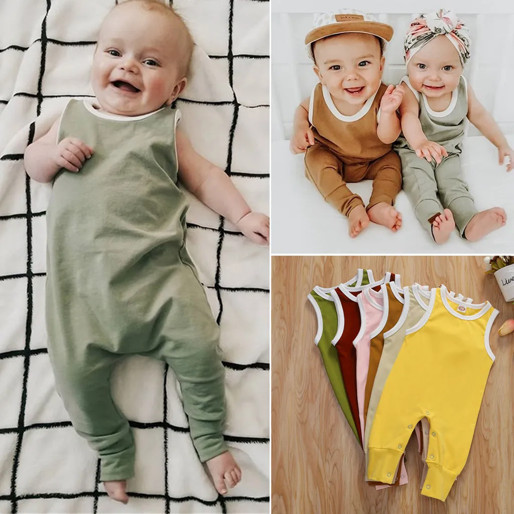 Детский комбинезон, жилет для мальчиков и девочек, однотонный комбинезон с круглым воротником, узкие брюки, дизайнерский комбинезон с пуговицами, Повседневный хлопковый комбинезон