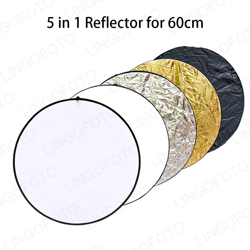 Серебряный Отражатель является общим использованным отражателем, он делает глаза людей портрета полными энергии. Золотой отражатель делает светильник более теплым, который используется как основной светильник. Это делает кожу более здоровой. Черный Отражатель используется для уменьшения светильник. Белый отражатель подходит для улучшения светильник. Это делает картинку мягкой и удобной и улучшает детали теней. Прозрачный отражатель подходит для уменьшения контрастности и смягчения светильник под солнцем и прямой светильник