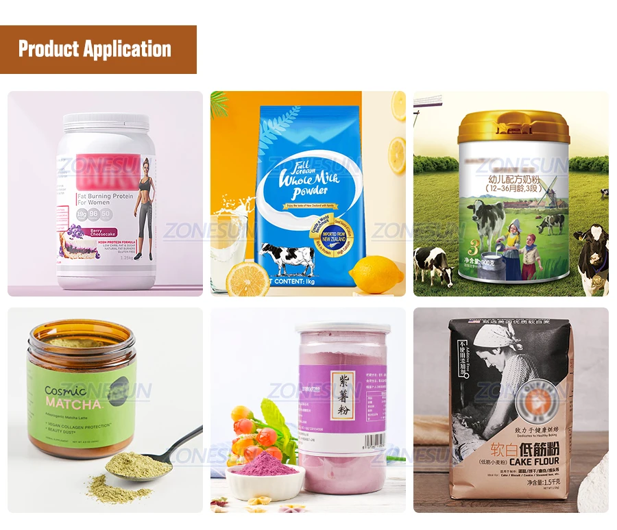 Этот порошок машина подходит для заполнения большая вместимость порошок материал, как мука, порошок матча и т. Д. Он широко используется в пищевой, ежедневной химической, косметической и фармацевтической промышленности.