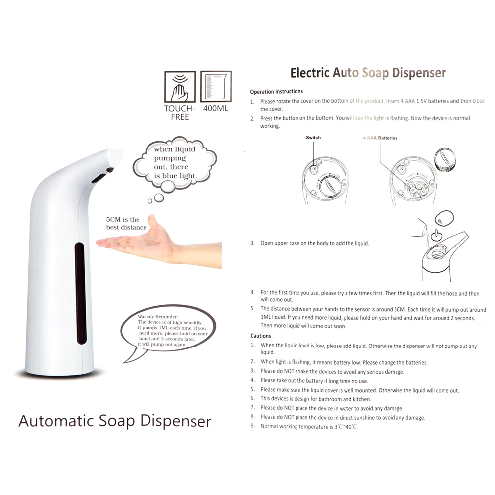 Диспенсер для мыла питается от четырех батарей AAA (не входят в комплект), без ограничения кабеля питания, который удобно разместить в любом месте, которое вам нравится.