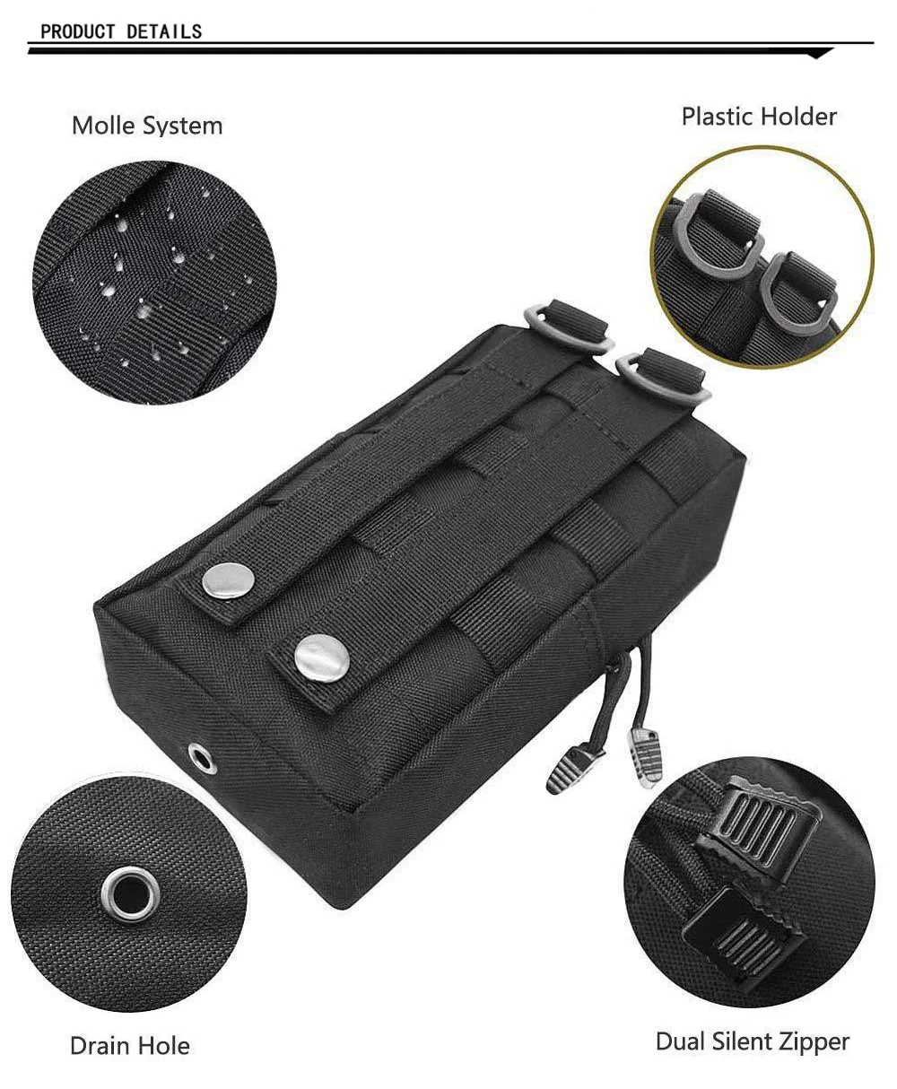 Универсальный Чехол Molle: разработан как тактический Чехол molle, который можно использовать как мешочек для повседневного использования molle, тактическая Сумка molle, поясная Сумка EDC, сумка для инструмента или тактическая поясная сумка. Каждый Чехол molle имеет две молнии для быстрого доступа и стальное отверстие для слива заклепок внизу и два кольца D сверху, специально для кемпинга и пеших прогулок, станет отличным подарком для любителей спорта на открытом воздухе.