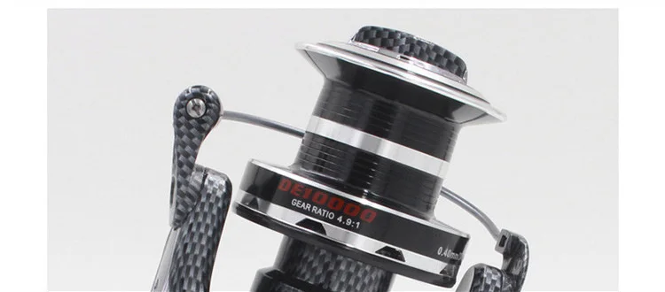 Название: DE far метательная Рыболовная катушка Ручка: взаимозаменяемые Подходит для морских районов: озер/водохранилищ/прудов Мощность линии (мм/м): DE9000: 0,50/230; 0,60/200 DE10000: 0,50/300; 0,60/280 Количество подшипников: 12 + 1
