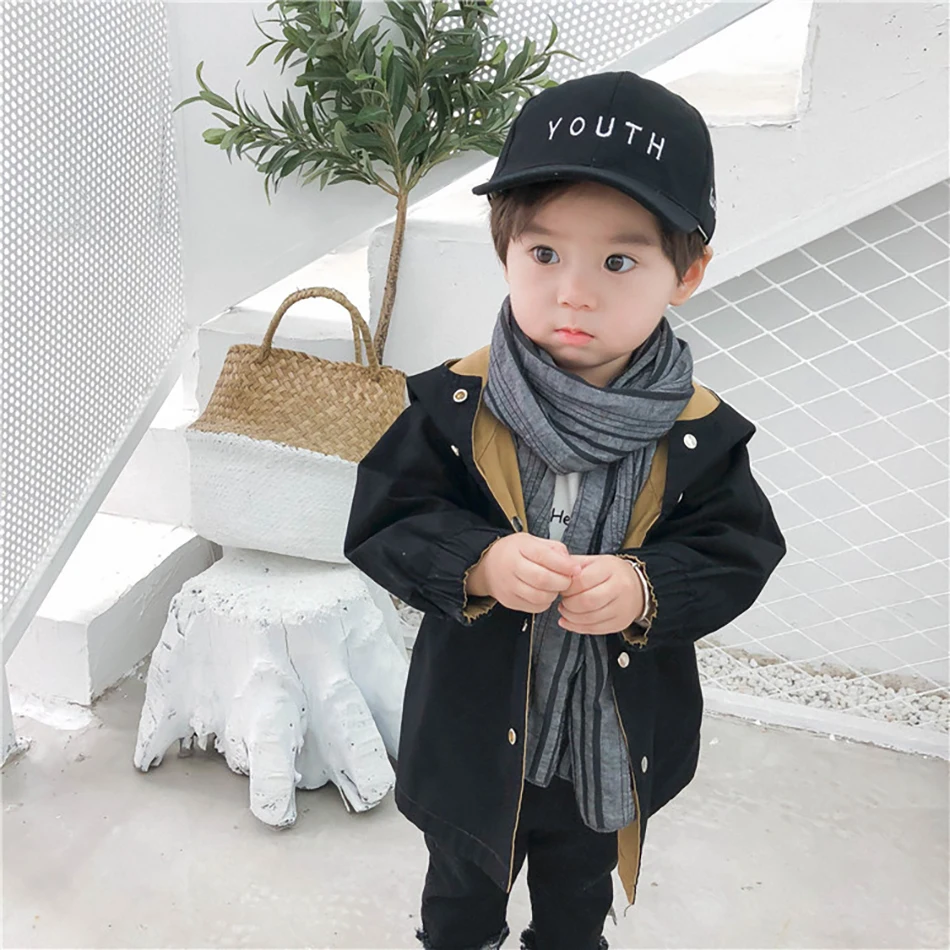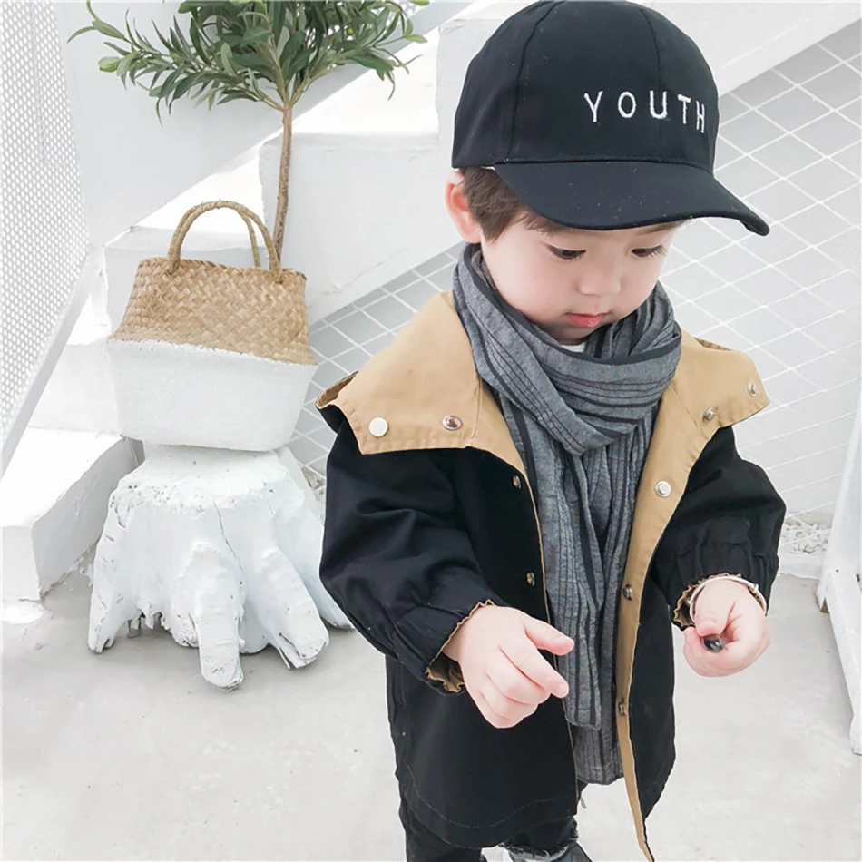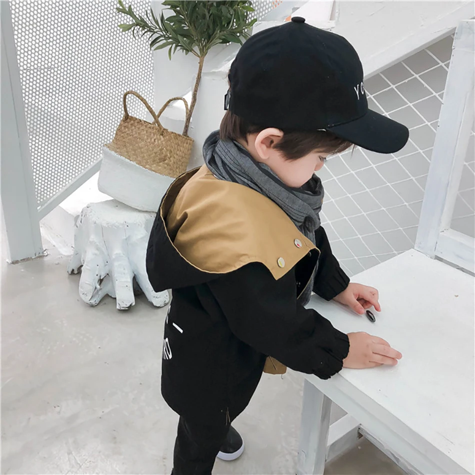 Новинка, теплая одежда, детская куртка, двухстороннее пальто для мальчиков, хлопковые куртки с надписью, верхняя одежда на весну и осень, одежда с капюшоном для мальчиков