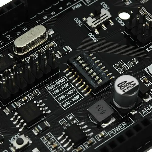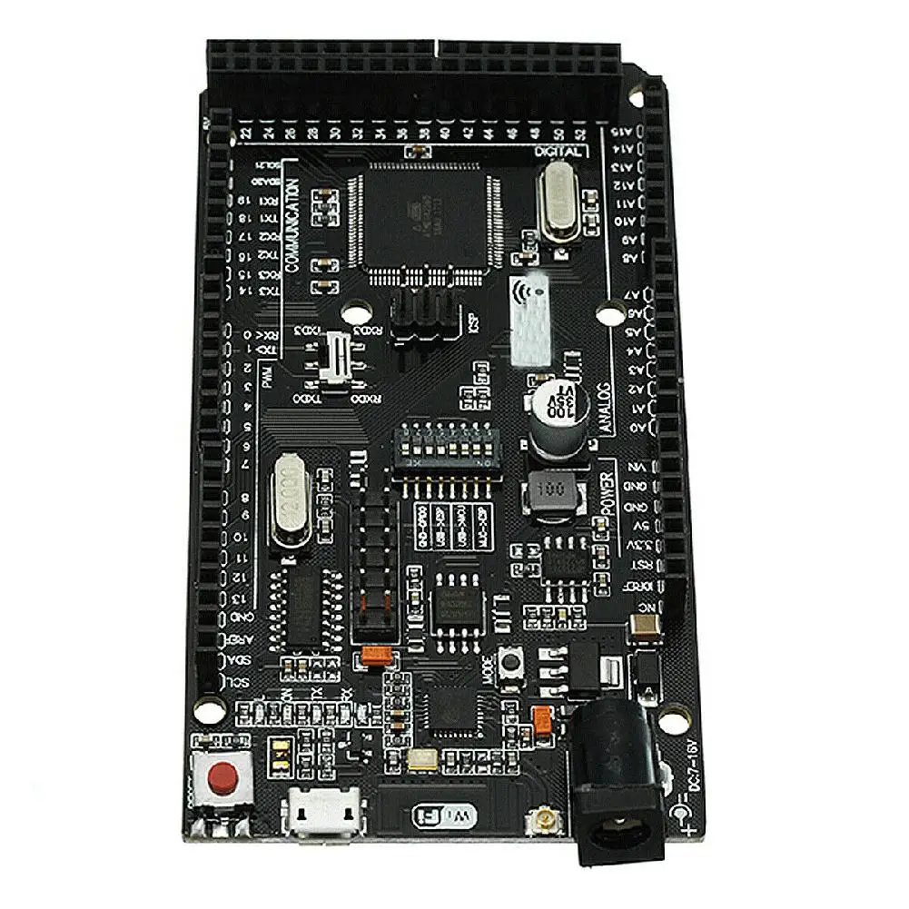 Полная интеграция на одной плате: Mega R3 ATmega2560 и WiFi ESP8266 с памятью 32 МБ.