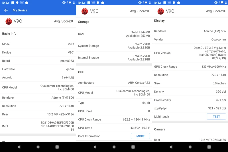 Размеры 164,9*83,5*13 мм Вес 243 г Sim-карта двойная micro SIM ОС Android 9,0 пирог ЦП Qualcomm SDM450 Cortex A53 Восьмиядерный, 1,8 ГГц; GPU: Adreno 506 @ 650 МГц Экран 5,7 дюймов Оперативная память 3 Гб оперативной памяти, Оперативная память ROM 32 ГБ ROM, Клавиши питания, громкость вверх/вниз, кнопка сканирования * 2, F1, F2, Home Передача данных USB Type-C/BT Фронтальная камера 5.0MP, 13.0MP задняя камера