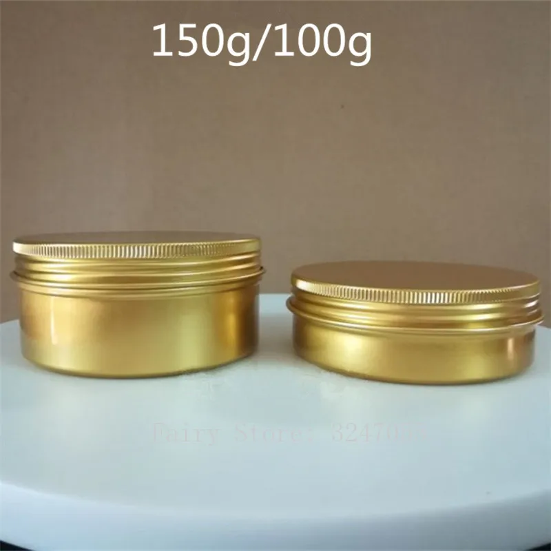 Оптовая продажа 30/50/60/80/100 г 150 г Золотая алюминиевая Жестяная Банка, металлические контейнеры, контейнер для бальзама для губ, пустые банки, крем-горшок, коробка, бутылка для макияжа
