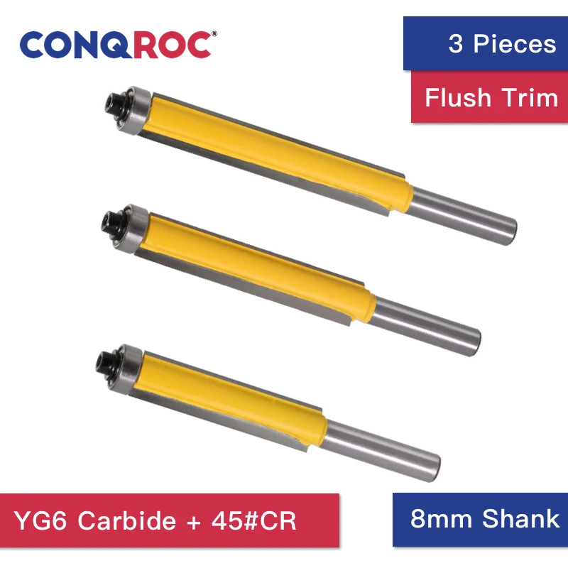 3 шт. Удлиненные Прямые фрезы Набор с подшипниками для обрезки лопастей 8 мм хвостовик заподлицо отделка древесины фрезы комплект