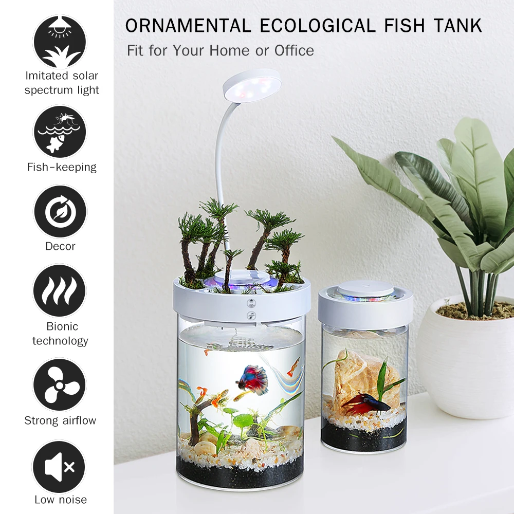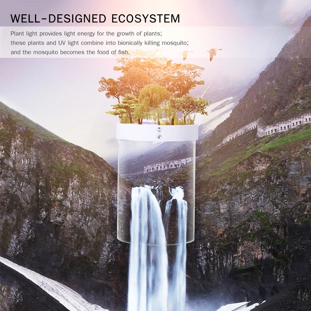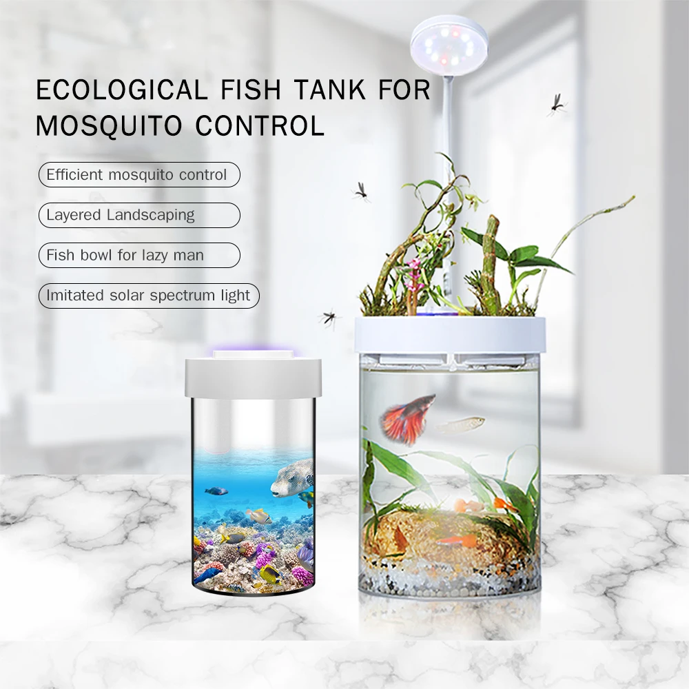 3 в 1-Это комбинация аквариума, цветочного горшка и устройства для уничтожения комаров. Он используется для хранения рыбы; Кроме того, вы можете выращивать некоторые мини-растения поверх него; Прикоснитесь, чтобы включить светильник, заменяет его на лампу для уничтожения комаров.